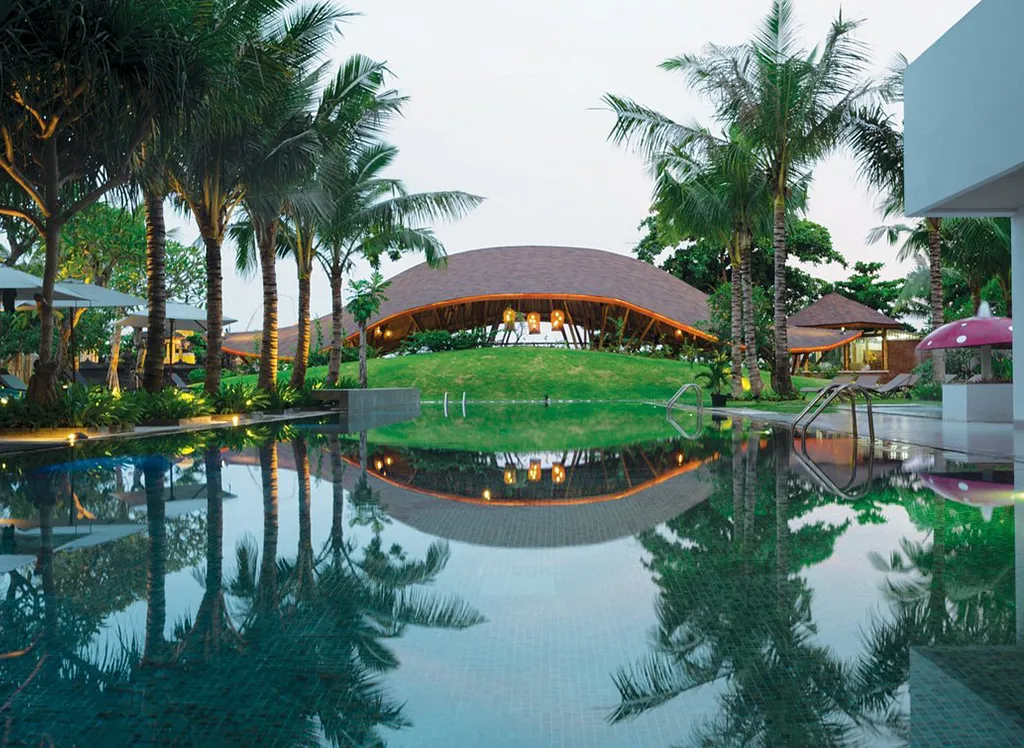 Den moderne, balinesiske arkitektur kan ses overalt på hotellet, og selve hotellet ligger smukt omgivet af frodige haver.