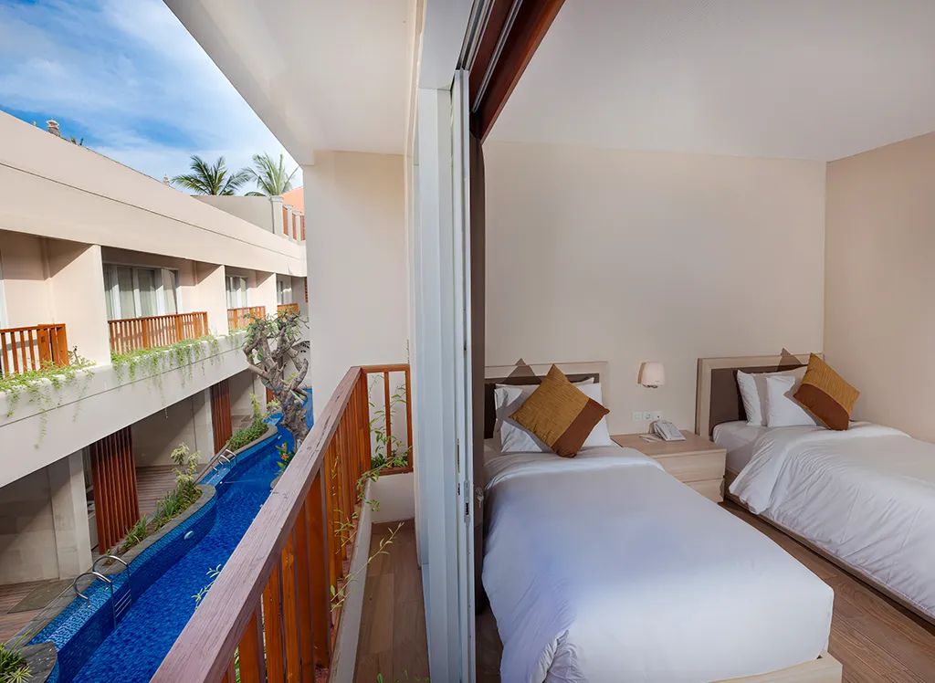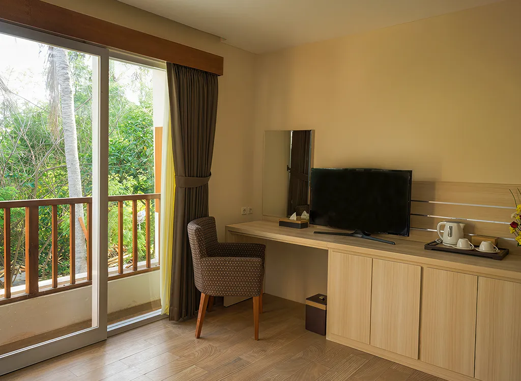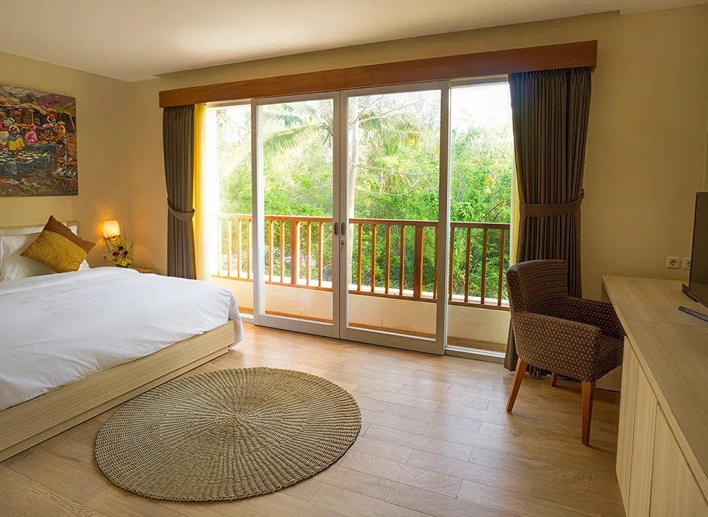 Værelserne på Dnusa Beach Club Resort er smagfuldt indrettet i en moderne balinesisk stil og tilbyder alle nødvendige faciliteter for et komfortabelt ophold. Værelserne har enten en dobbeltseng eller to enkeltsenge. Alle værelser har aircondition, Wi-Fi samt en safebox til opbevaring af værdigenstande. De rummelige og lyse værelser skaber en afslappende atmosfære, perfekt til en fredfyldt ferie.