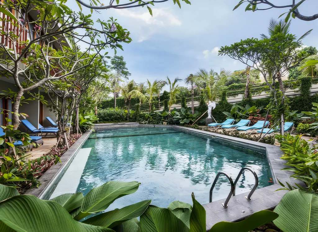 Ubud Wana Resort er et skønt, familievenligt hotel med swimmingpool, børnepools, restaurant og rummelige familieværelser nær Ubuds berømte abeskov.