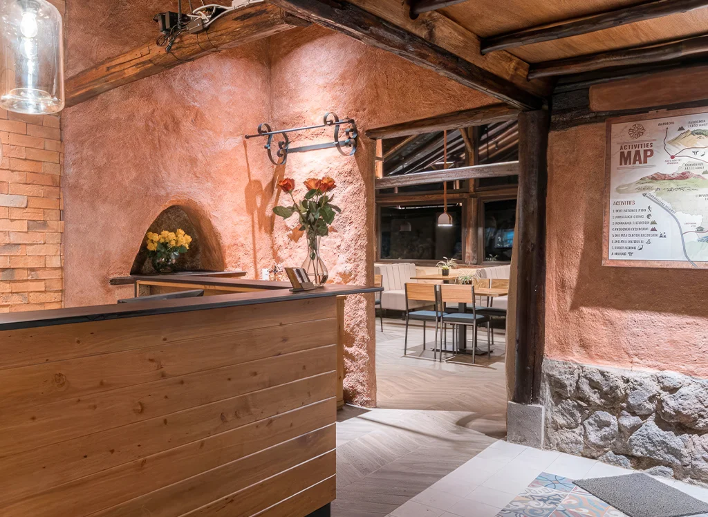 Værelserne har en enkel, rustik stil og er indrettet med trædetaljer og brændeovn. De har enten dobbeltseng eller to enkeltsenge, og der tilbydes Wi‑Fi. Enkelte værelser har udsigt til bjergene.
