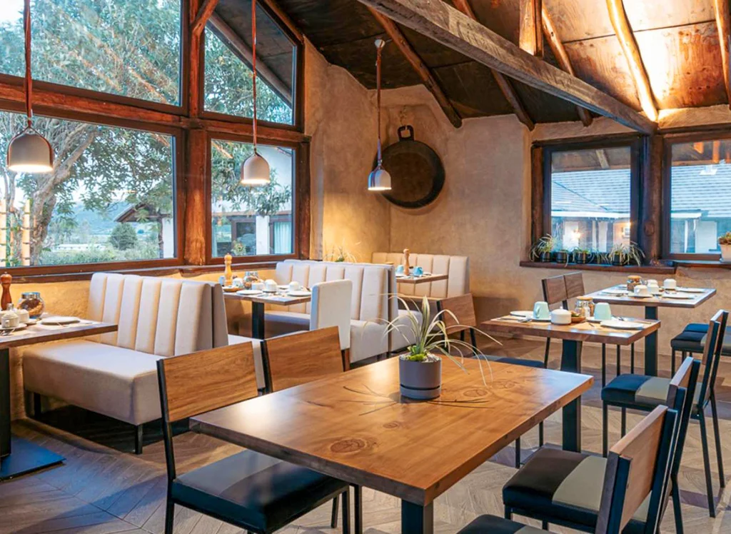 Restauranten serverer både lokale ecuadorianske retter og internationale klassikere. Maden laves med fokus på friske, lokale råvarer, og spisesalen byder på en afslappet atmosfære med udsigt til naturen.