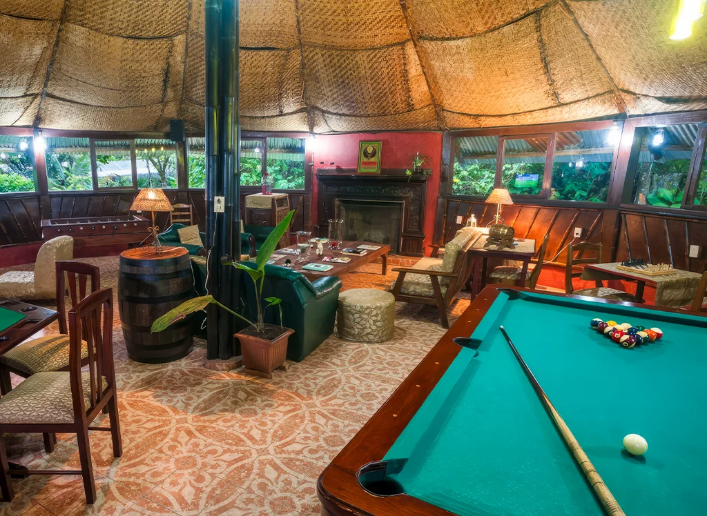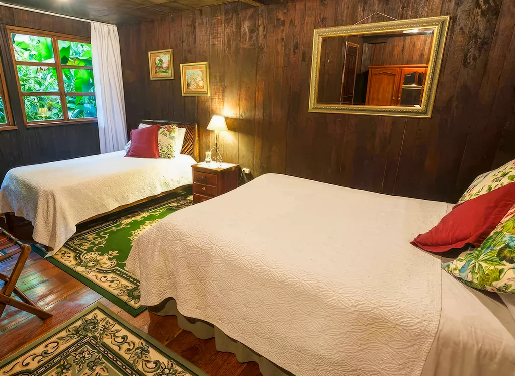 Værelserne er indrettet i klassisk, rustik stil med træmøbler og varme farver, hvilket skaber en hyggelig og rolig stemning. Værelserne har enten dobbeltseng eller to enkeltsenge, og der er både aircondition, WiFi og safebox – alt du har brug for til et komfortabelt ophold i regnskoven.