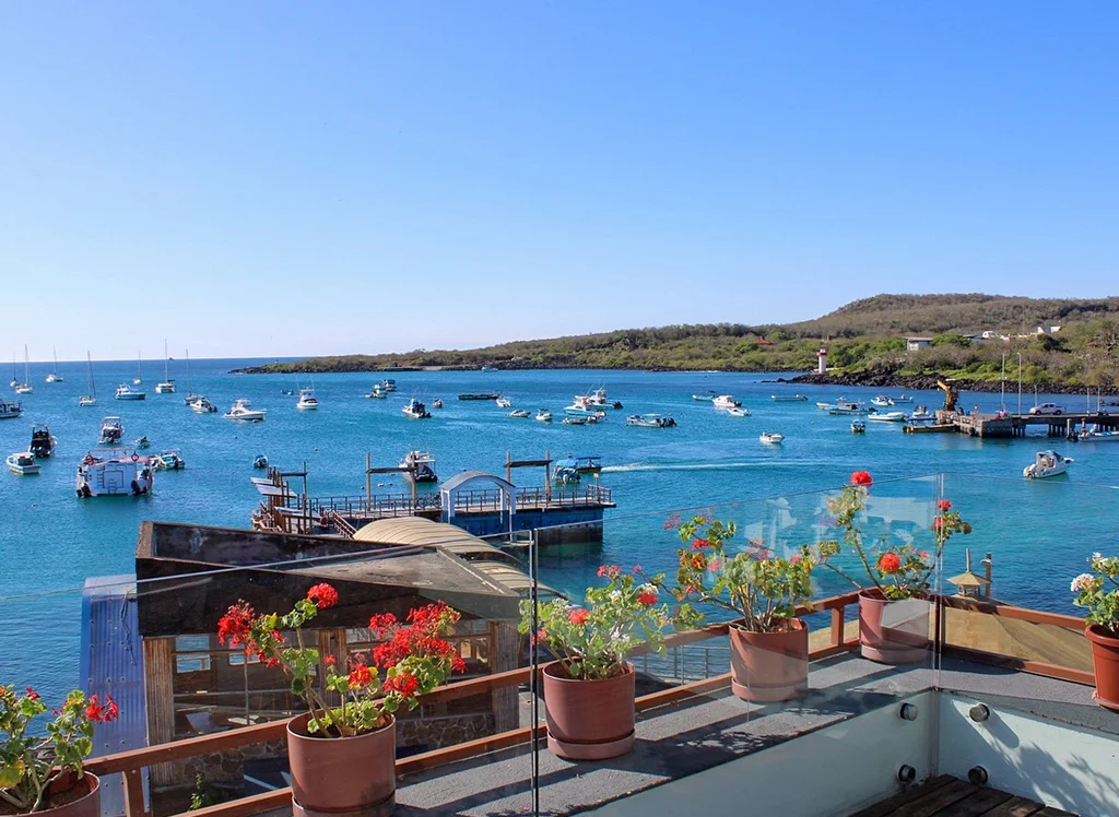 Hotellet har en solterrasse, hvor du kan nyde udsigten over bugten og slappe af med en god bog eller en kop kaffe. Desuden er det en kort gåtur til seværdigheder som Charles Darwin Research Station. Området inviterer også til gåture langs vandet og mulighed for at opleve det lokale liv og natur tæt på.