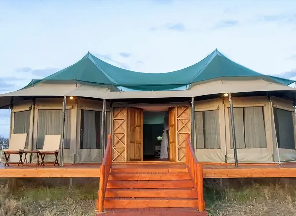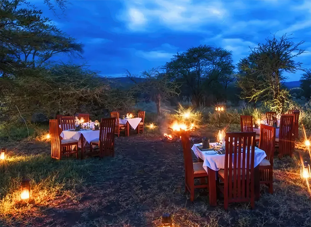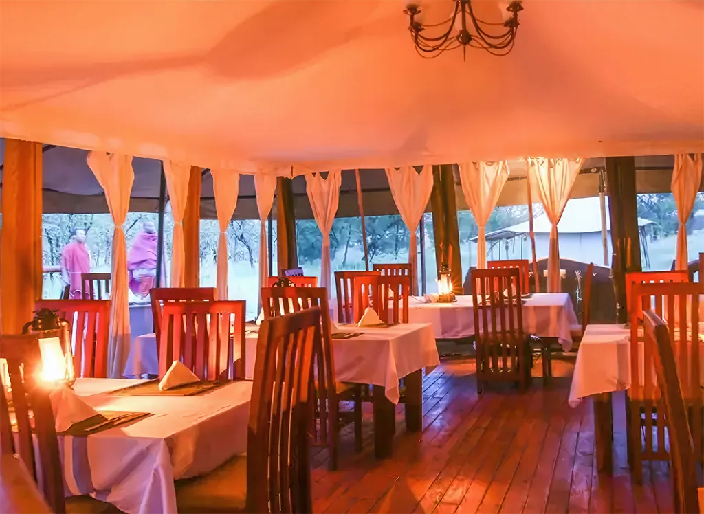 Hvis du har brug for lidt afslapning efter en lang dag med safari, kan du få en gang massage, du kan slappe af med en god bog i loungen eller nyde en drink eller en kold øl i baren. Spiseområdet ligger i et separat telt.