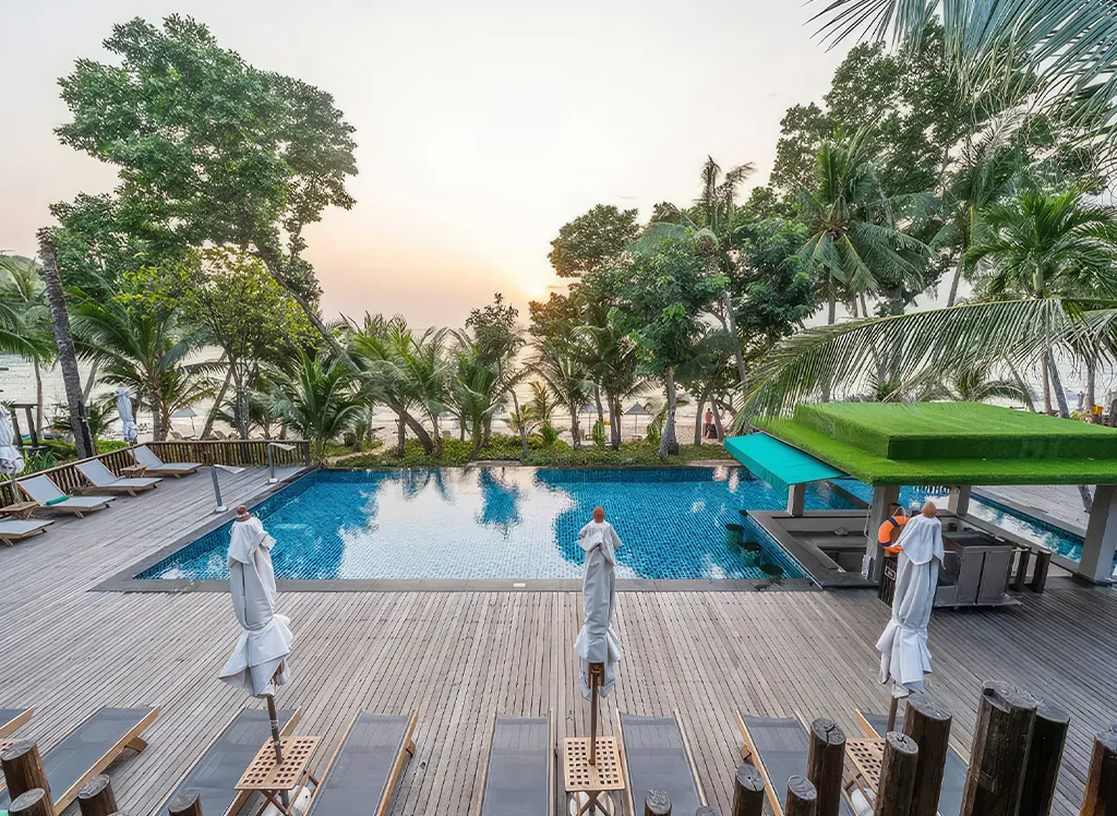 Ao Prao Resort på Koh Samet er en idyllisk oase direkte ved stranden, med luksuriøse værelser, to restauranter ved havet, infinity pool og spændende aktiviteter som snorkling og ø-hop. Perfekt til en afslappende ferie i naturskønne omgivelser.