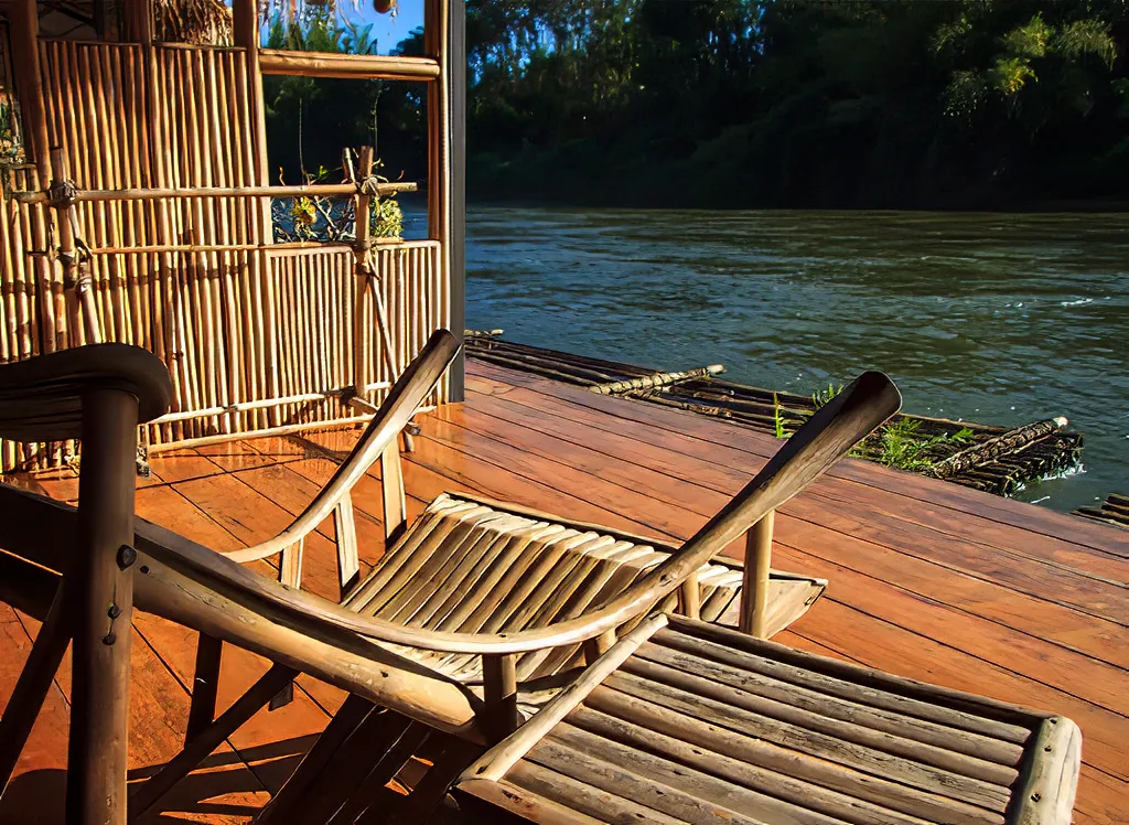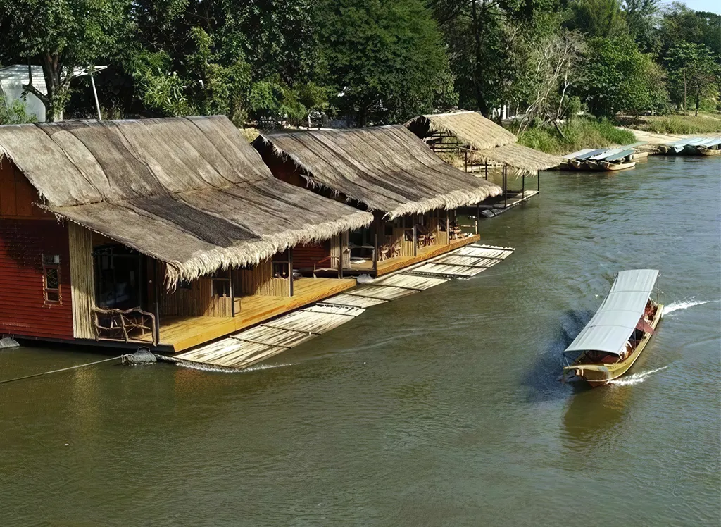 Velkommen til Boutique Raft Resort, som ligger ved ikoniske River Kwai omgivet af grønne bjerge og tilbyder indkvartering i flydende bungalows - perfekt for dig, der elsker naturen og roen. Der er også mulighed for at få et værelse på land.