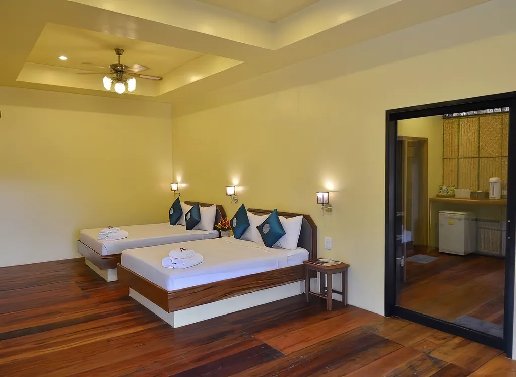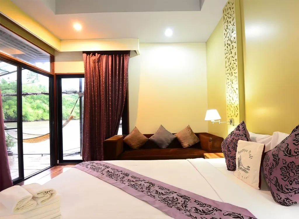 Alle værelser har aircondition og loftvifte, sofa, garderobe, minibar, varmt vand og en lille terrasse, hvor du kan nyde de dejlige omgivelser. Vær opmærksom på, at der kun er begrænset adgang til elektricitet, som typisk er tilgængelig fra om aftenen til om morgenen.