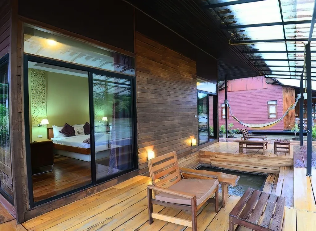 Boutique Raft Resort ligger ved ikoniske River Kwai. Her bor du midt i naturen og roen med nem adgang til seværdigheder som Hellfire Pass, vandfald, huler, varme kilder og museer.