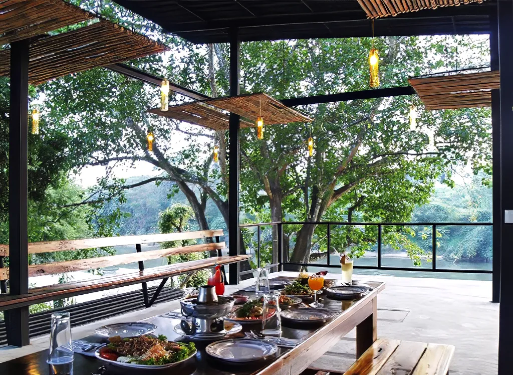 Du kan for eksempel leje en cykel, sejle en tur på tømmerflåde eller tage en dukkert i "swimmingpoolen", som ligger i floden. Der er også en restaurant, som tilbyder et udvalg af thailandske og internationale retter, hvorfra der er panoramaudsigt over bjergene og floden.