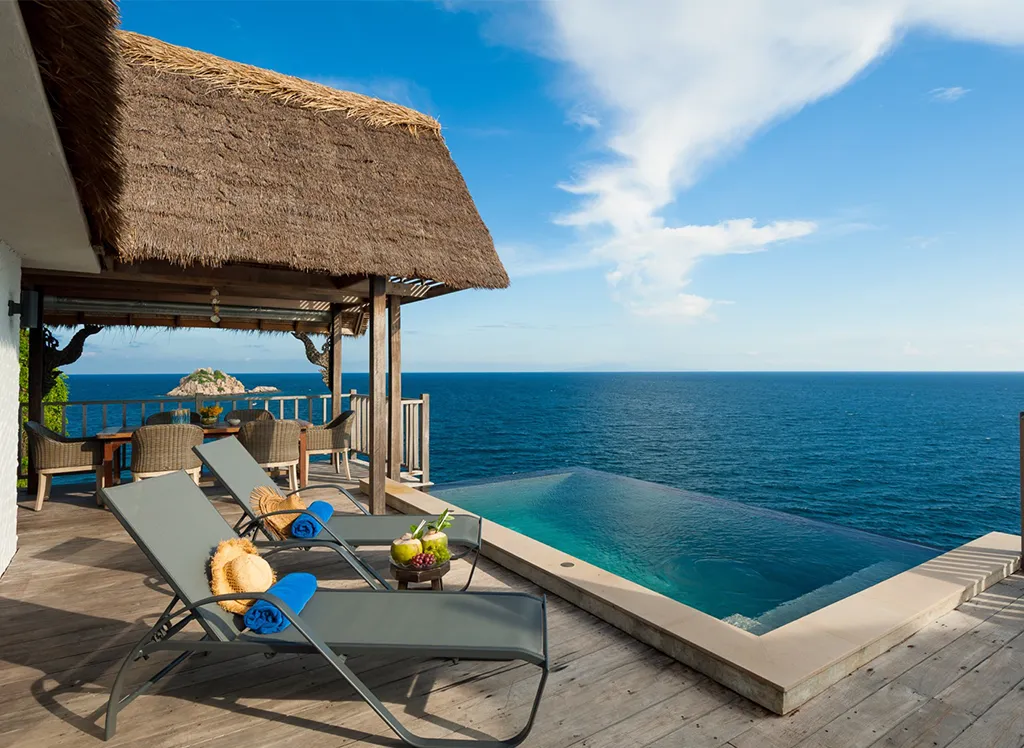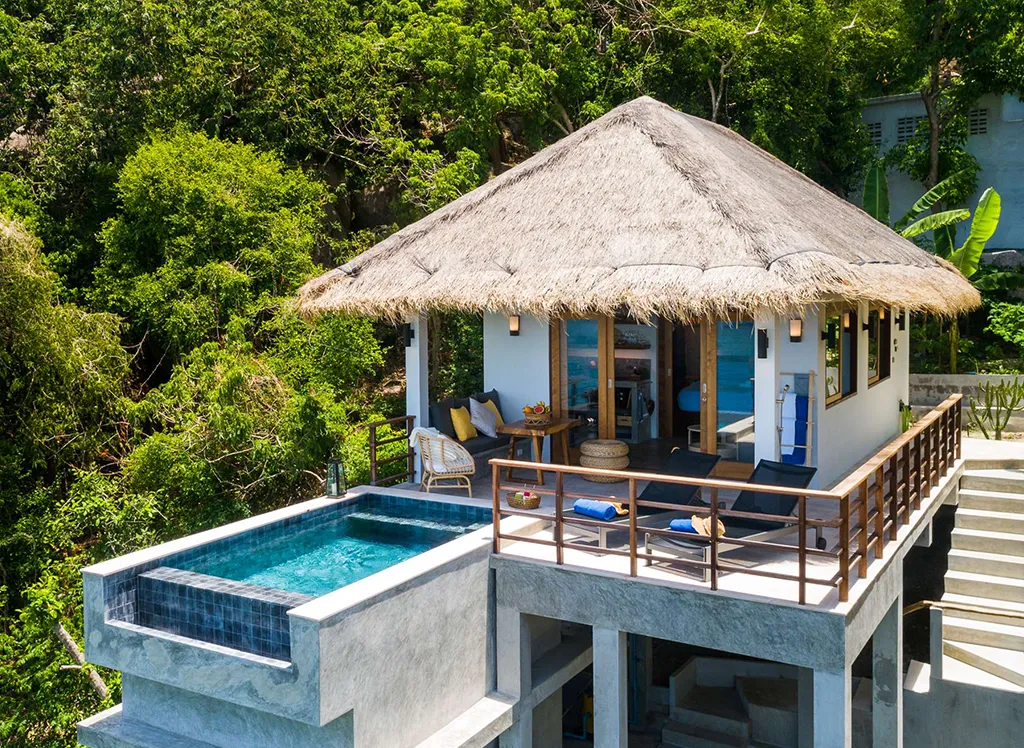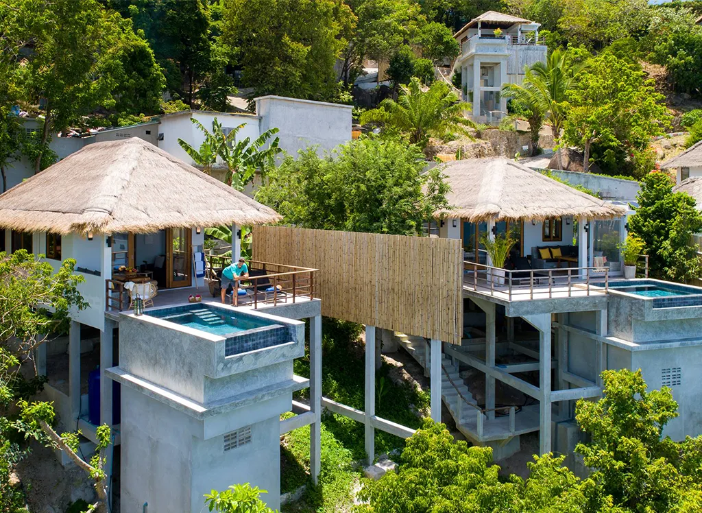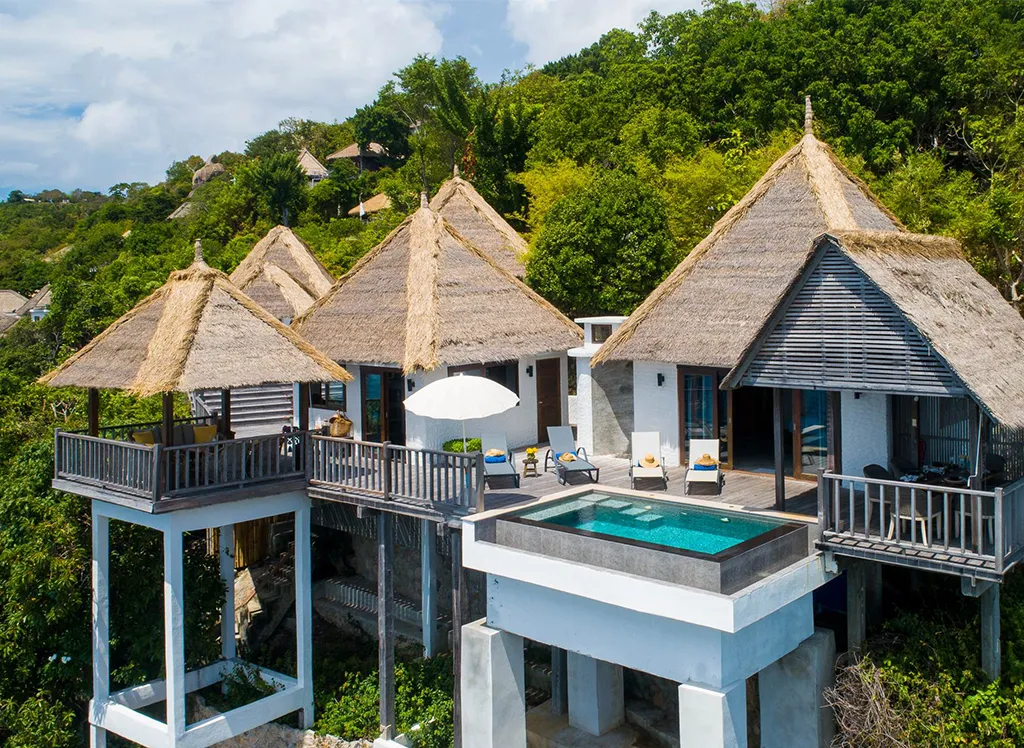 På Cape Shark Pool Villas bor du i luksuriøse villaer med privat infinity-pool og en formidabel udsigt over Shark Bay på paradisøen Koh Tao. Bliv fristet her.