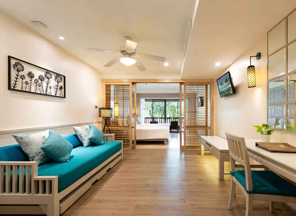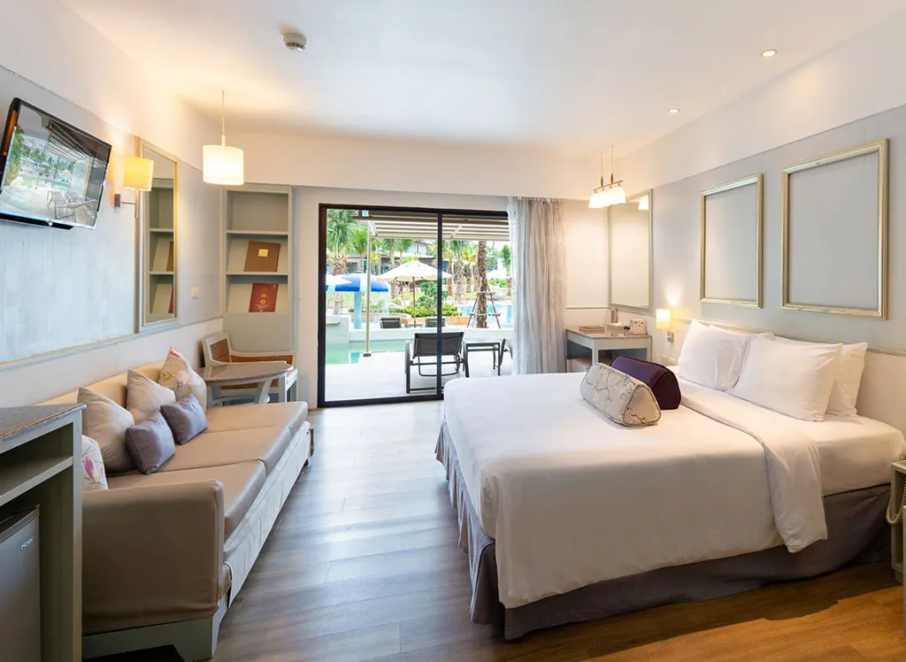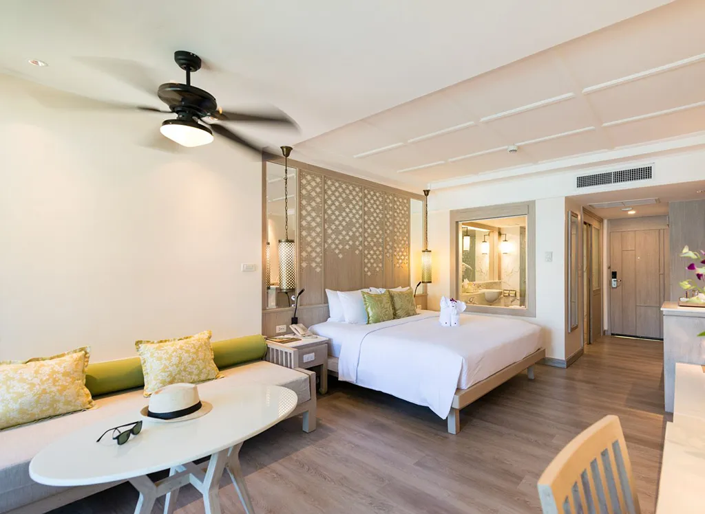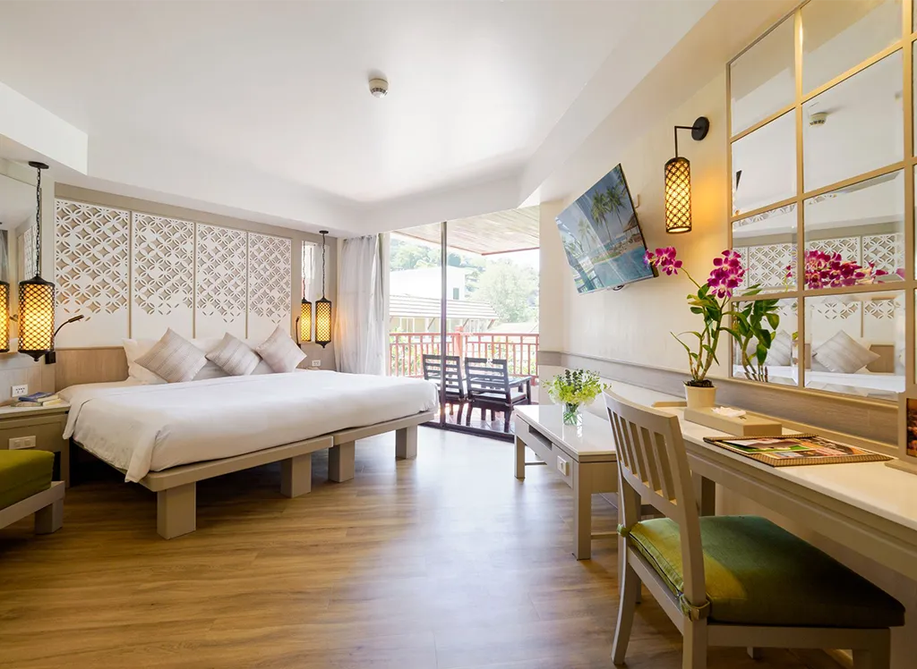 Du bor i pæne og rummelige værelser beliggende i Bhuri Wing. Alle værelser har aircondition, safebox, tv, badeværelse og en dejlig balkon med udsigt til den frodige have. Det er muligt at opgradere til fx direkte pooladgang (Bhuri Wing) eller havudsigt (Thani Wing).