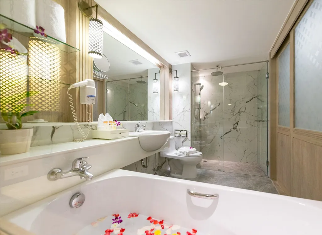 Katathani Phuket Beach Resort består af to områder – renoverede Thani Wing tættest på stranden og lidt ældre Bhuri Wing, som ligger lige på den anden side af vejen. De fleste faciliteter ligger i Thani Wing nærmest stranden, men begge områder har dejlige swimmingspools og børnepools. Som gæst på Katathani Phuket Beach Resort har du naturligvis adgang til hele hotellet.