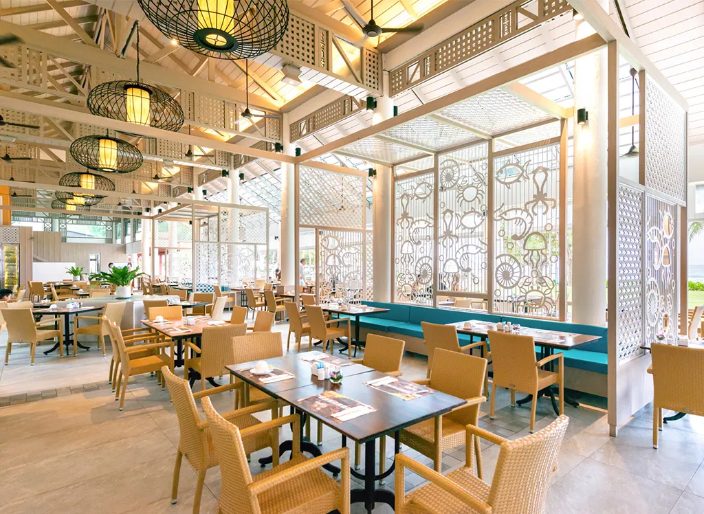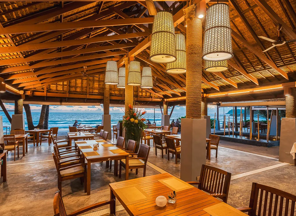 Når sulten melder sig, kan du vælge mellem hele seks restauranter, og her findes også en håndfuld barer, herunder en poolbar og en strandbar, hvor du kan nyde den spektakulære solnedgang over havet med en kold øl eller en farverig cocktail i hånden.