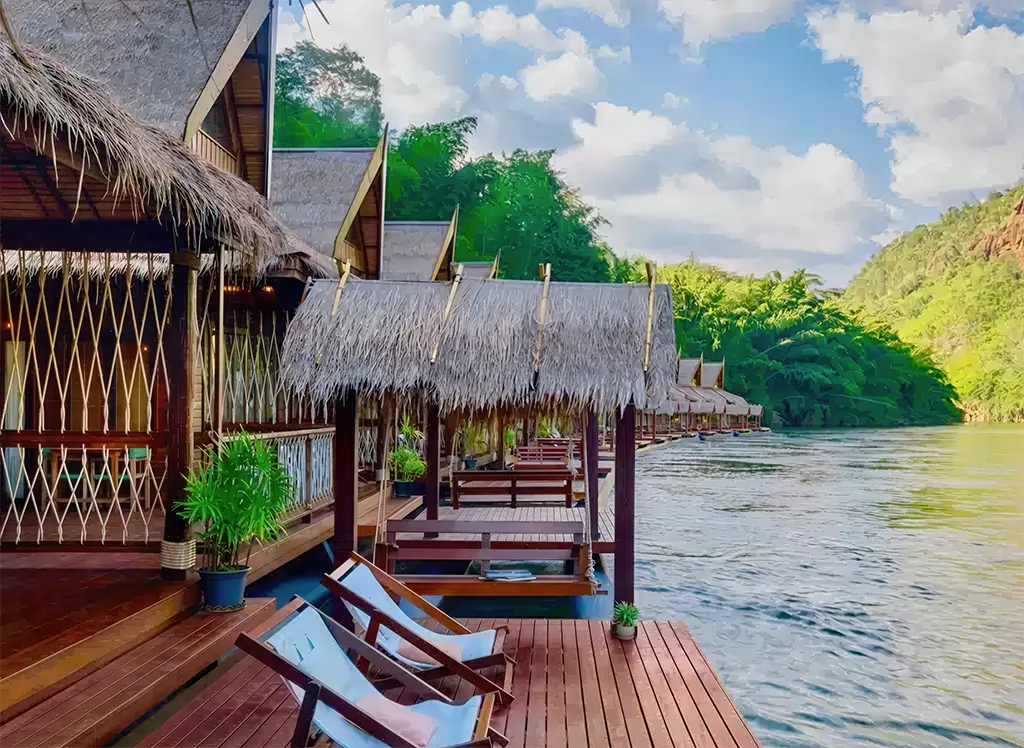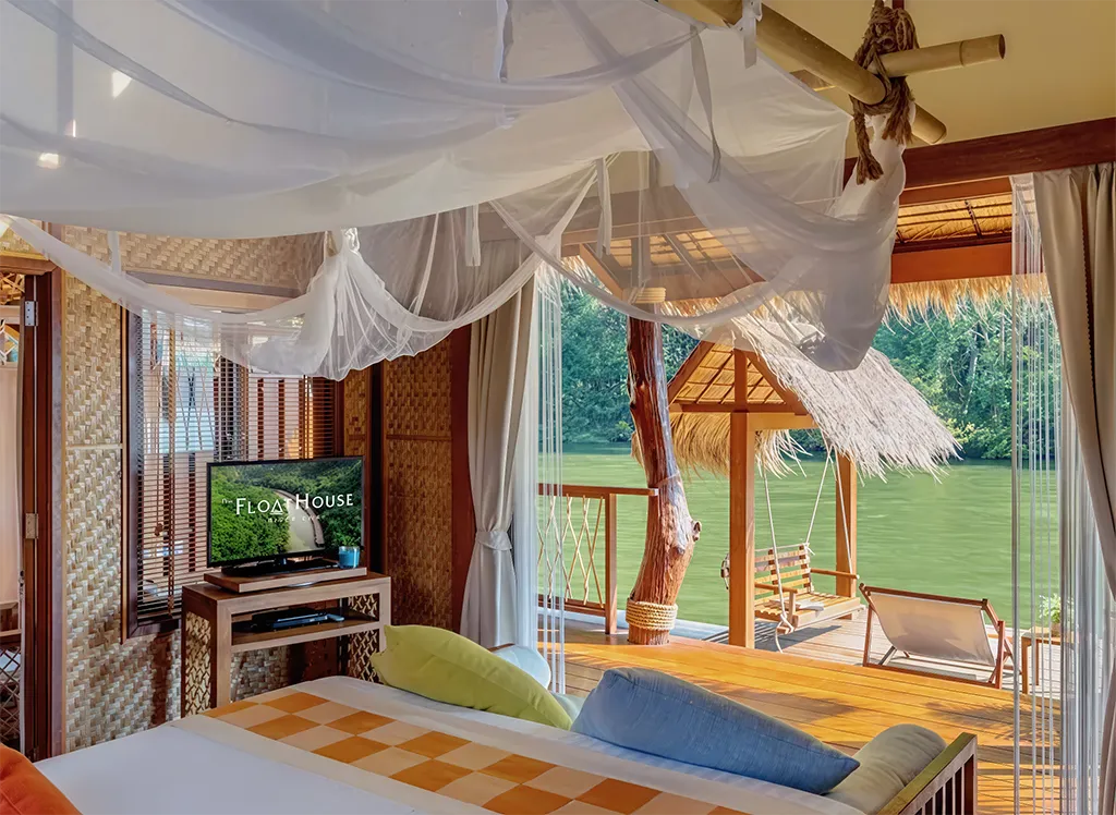 Ved The FloatHouse River Kwai Resort bor du i en flydende villa på floden River Kwai. Her får du en naturskøn oplevelse, omgiver af floden, bjerge og den thailandske natur.