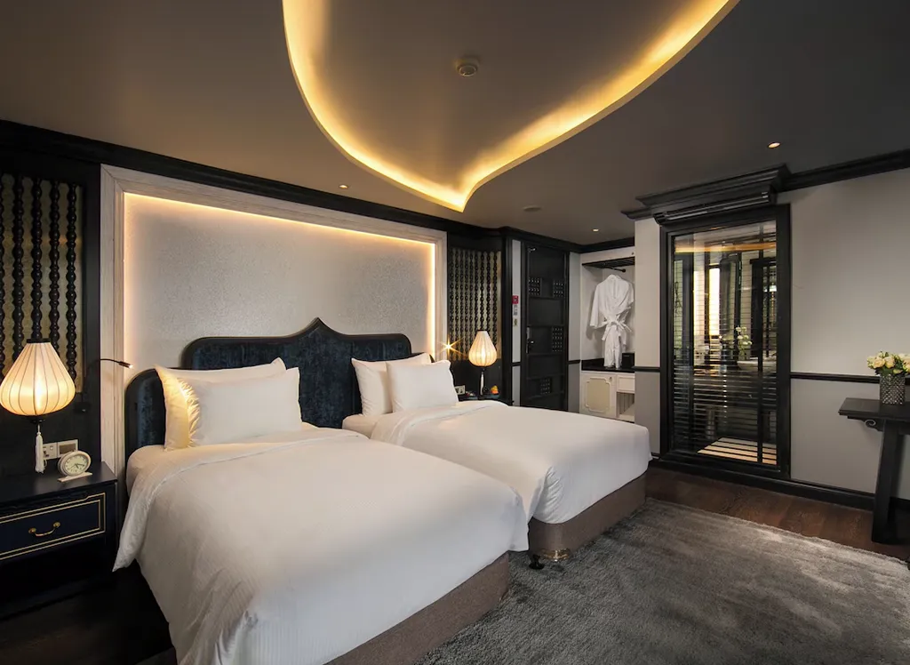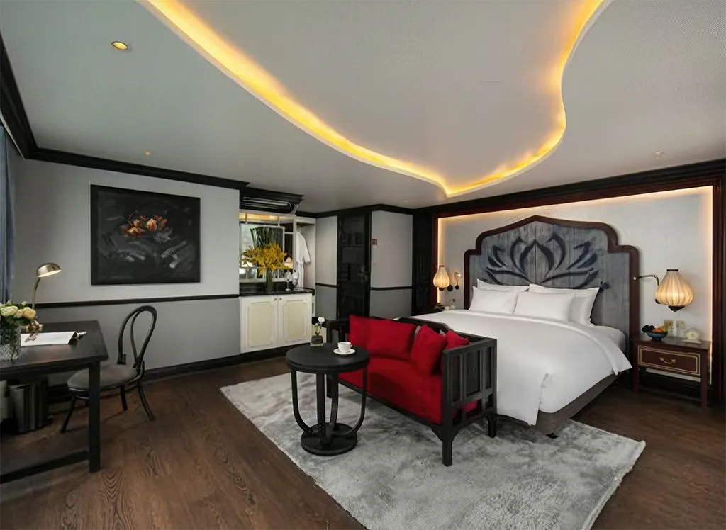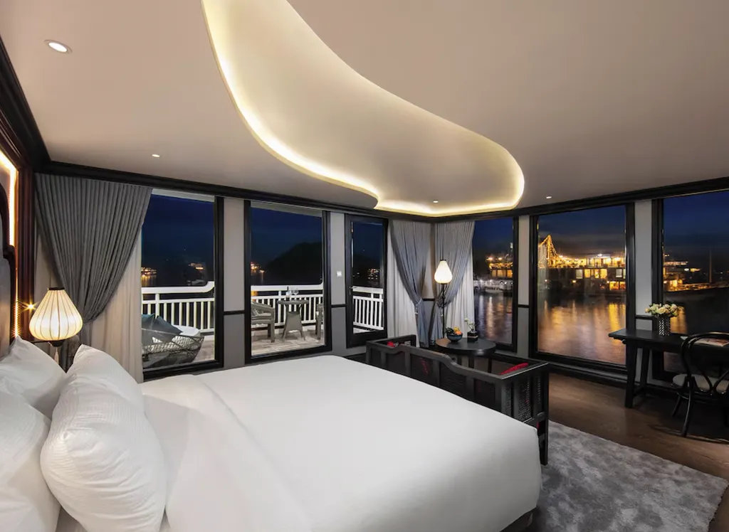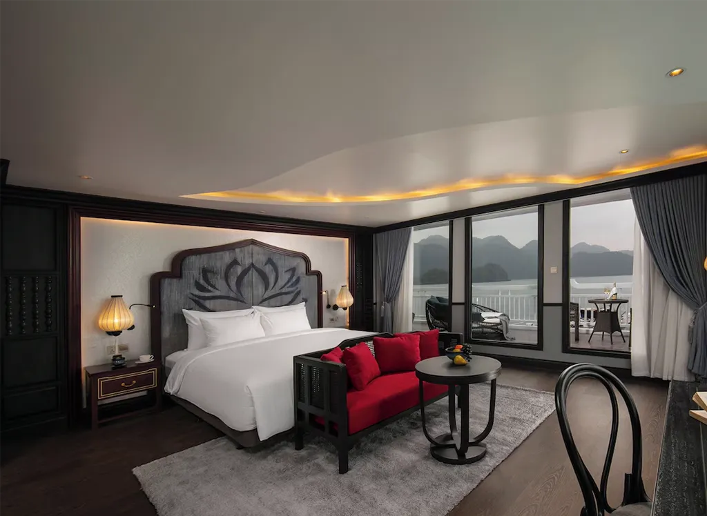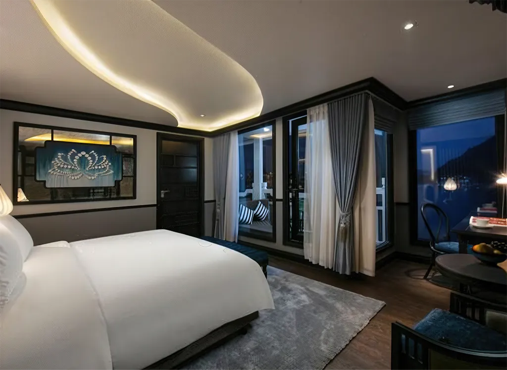 Le Journey Luxury Cruise byder på rummelige suiter, hver med egen privat balkon, der giver en uforstyrret udsigt over det omkringliggende landskab. Værelserne er smagfuldt indrettet med en blanding af vietnamesisk tradition og kolonial elegance. Hver suite er udstyret med moderne faciliteter såsom aircondition, en dobbeltseng eller to enkeltsenge, Wi-Fi og en værdiboks til personlige ejendele.