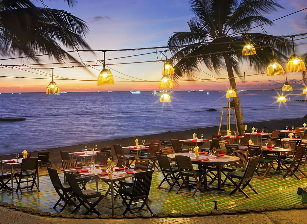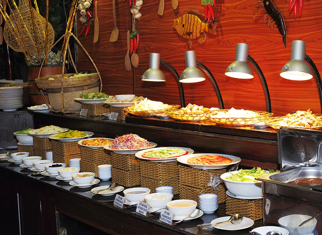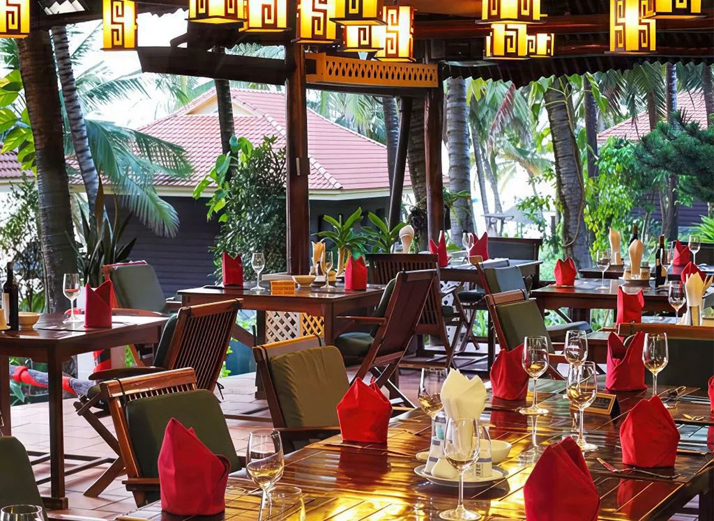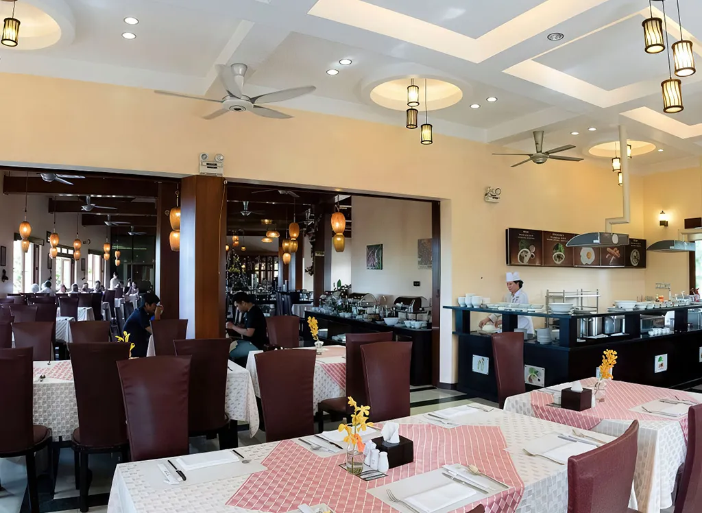 Når sulten melder sig, kan du vælge mellem to forskellige restauranter, som byder på blandt andet morgenmadsbuffet, a la carte menu og masser af frisk seafood. Fra Saigon Restaurant på førstesalen kan du nyde den fantastiske panoramaudsigt over Den Thailandske Golf og den smukke solnedgang over havet, mens Vietnam Restaurant ligger lige ved strandkanten med en hyggelig bar, hvor du kan få både fadøl og cocktails.