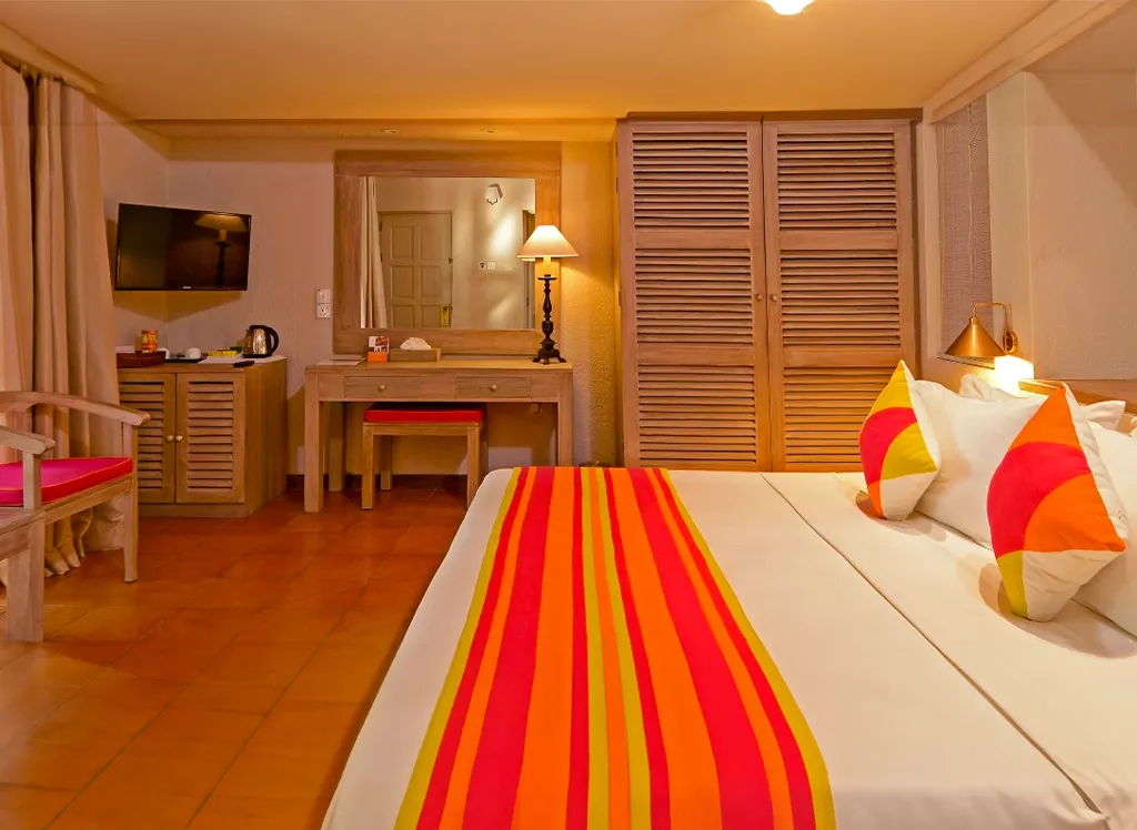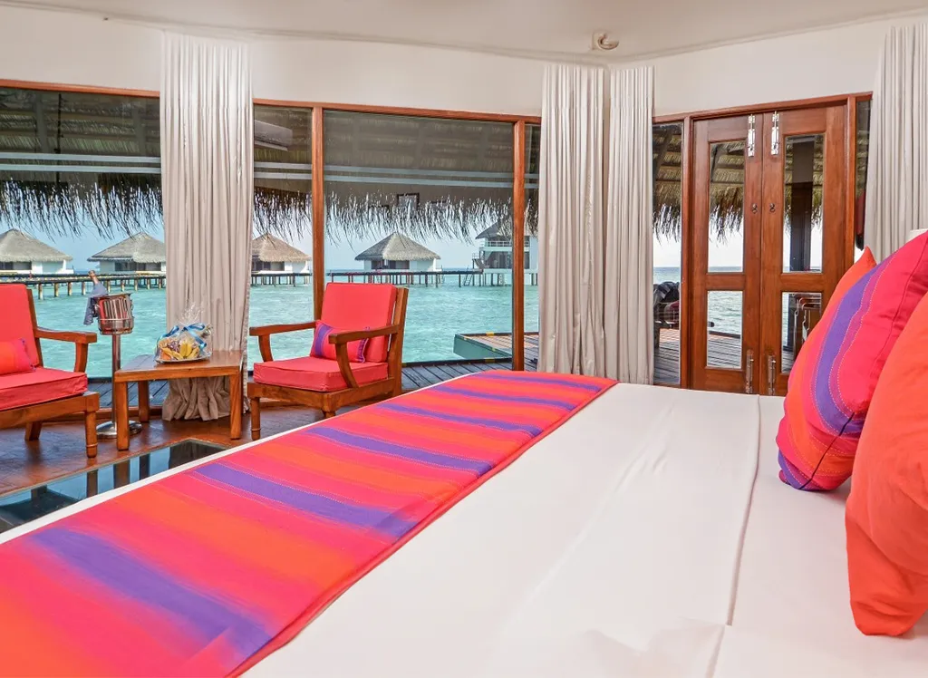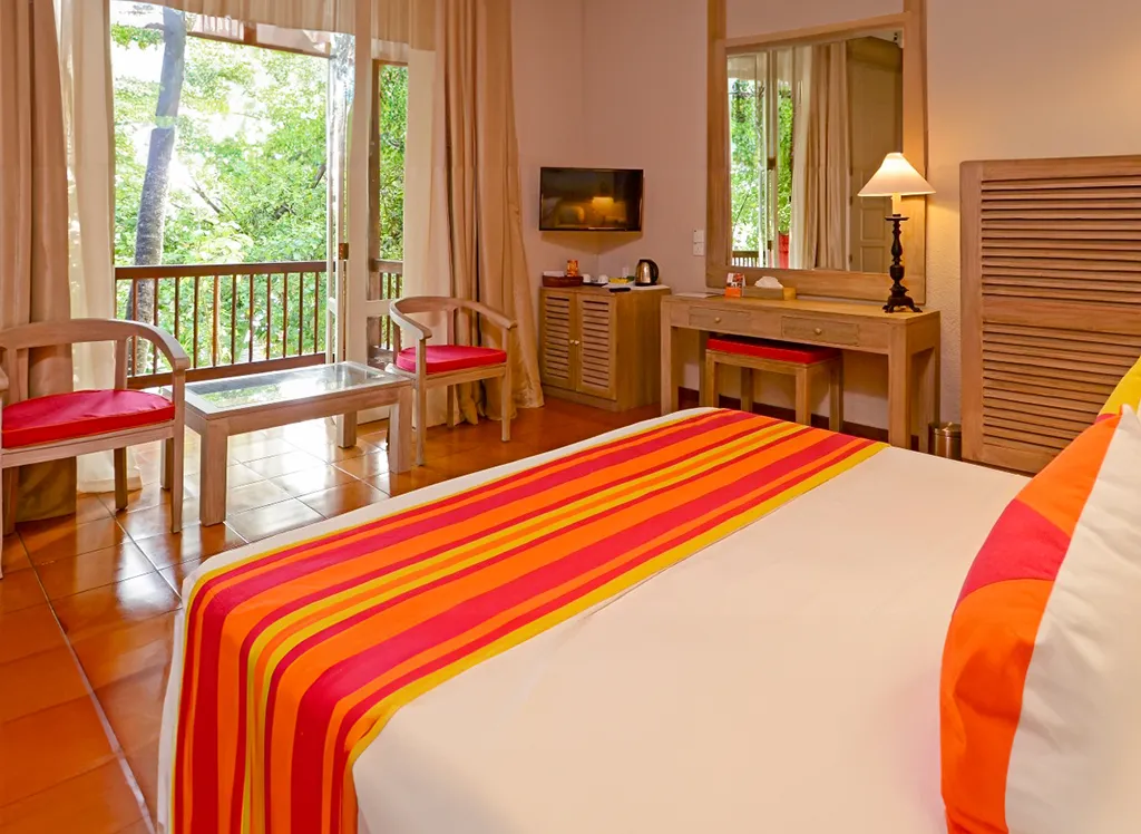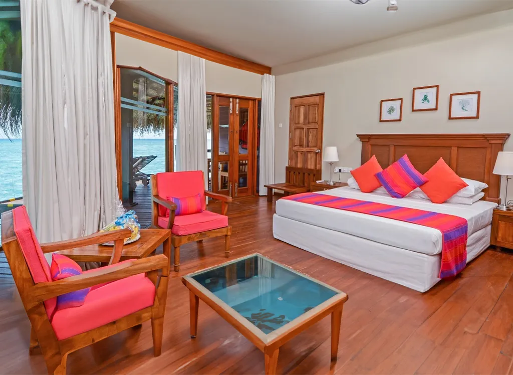 Alle værelser på Adaaran Club Rannalhi er pænt indrettede med gode senge, aircondition, safebox, minibar, wi-fi samt badeværelse.