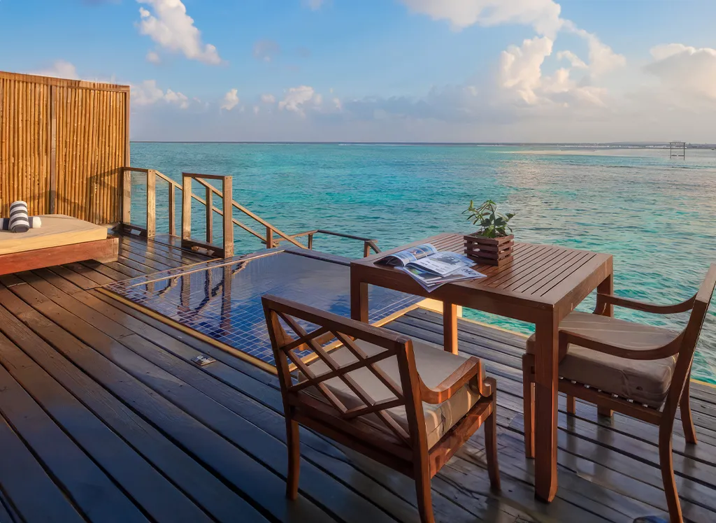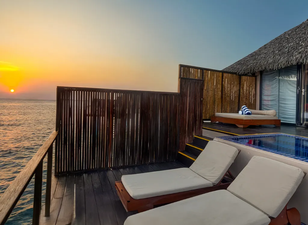 På Adaraan Prestige Vadoo får du den ultimative Maldiverne-oplevelse, når du indkvarteres i en luksuriøs water villa, som står på pæle direkte i det rolige, turkisblå vand og har en vidunderlig panoramaudsigt over havet. Villaerne er indrettet med et stort, lækkert badeværelse med spabad, en behagelig king size-seng og alle de faciliteter, du kan drømme om, herunder aircondition, minibar, safebox, wi-fi. Alle villaer har desuden en vidunderlig solterrasse med siddemøbler og direkte adgang til det krystalklare vand via en trappe. Fra solterrassen kan du også betragte det rige dyreliv i havet og være heldig at opleve blandt andet djævlerokker, pilrokker og skildpadder.