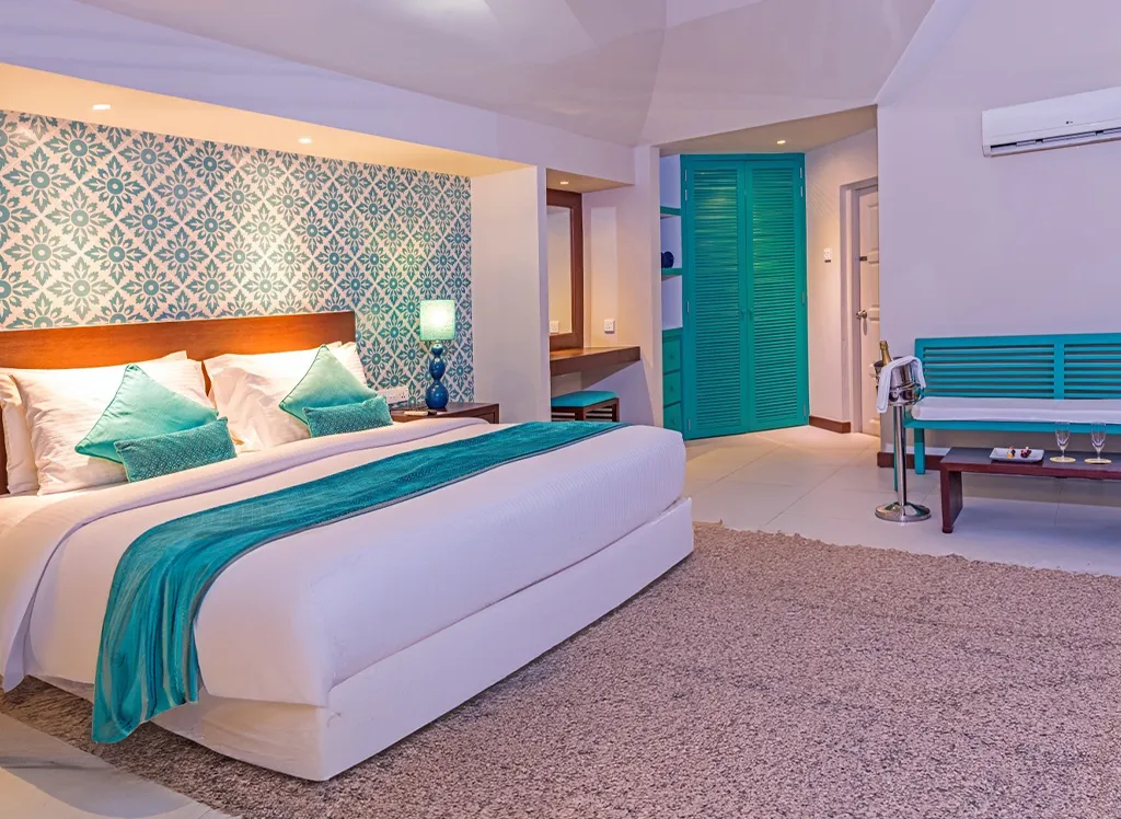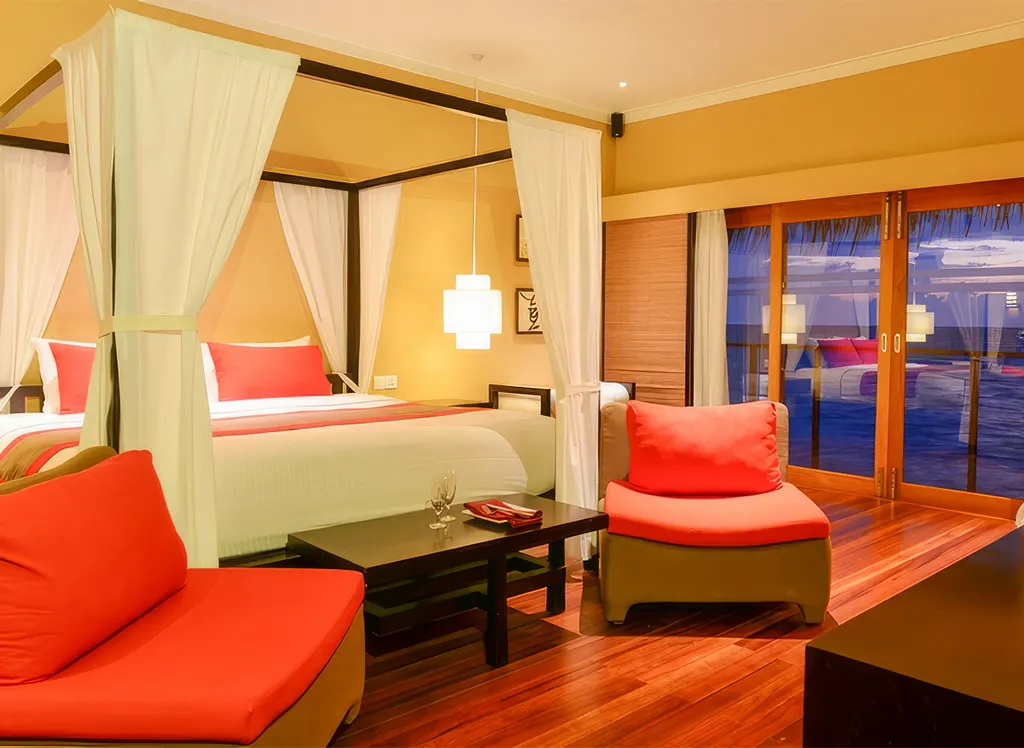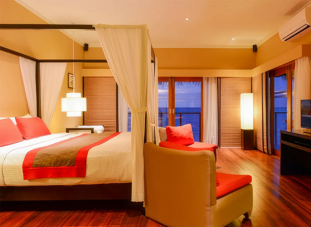 På Adaaran Select Hudhuran Fushi kan du vælge mellem fem forskellige værelsestyper. Fælles for alle værelser er, at de er udstyret med aircondition, minibar og eget badeværelse.