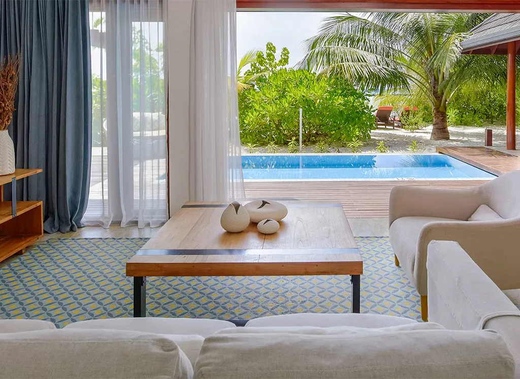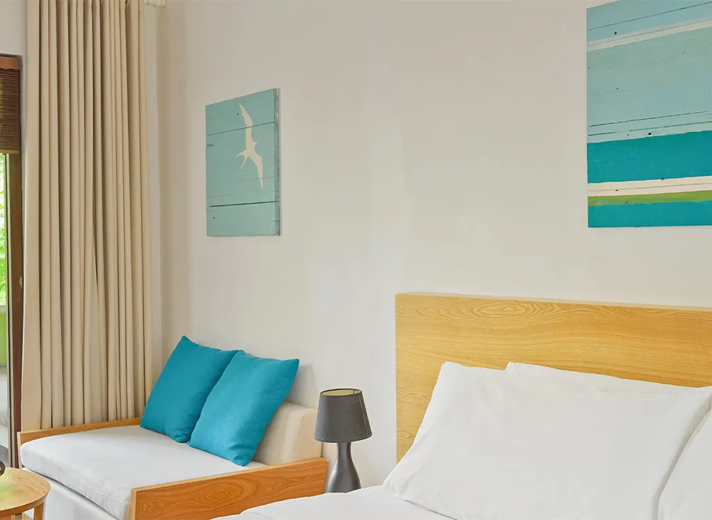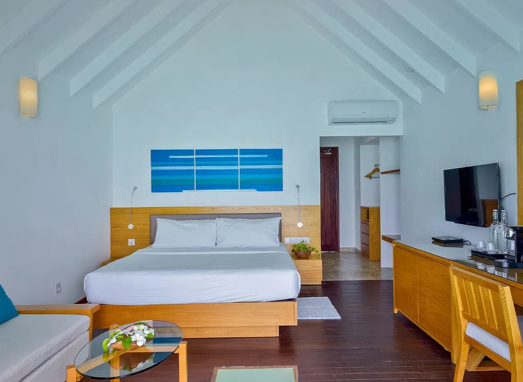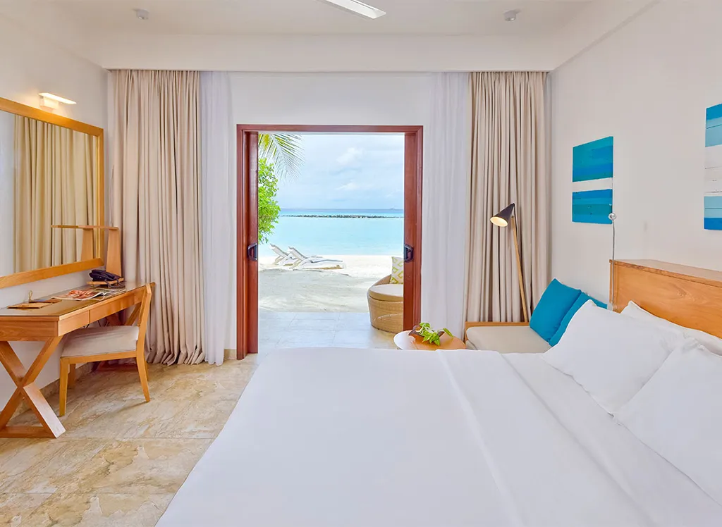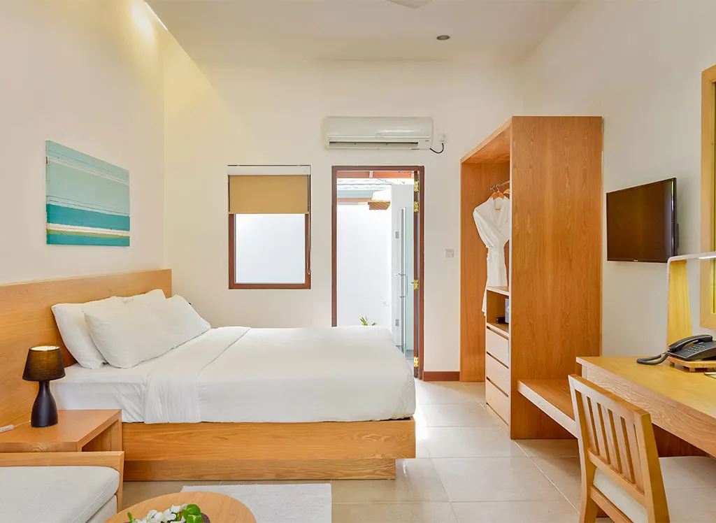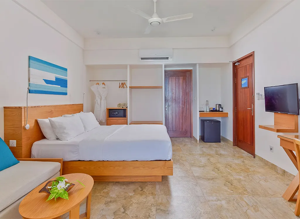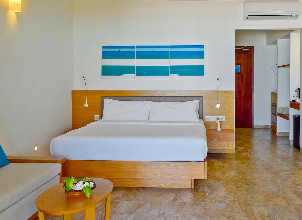På Summer Island Maldives kan du vælge mellem flere forskellige værelsestyper. Fælles for alle værelserne er, at de er indrettet i lyse farver og udstyret med aircondition, wi-fi og solsenge.