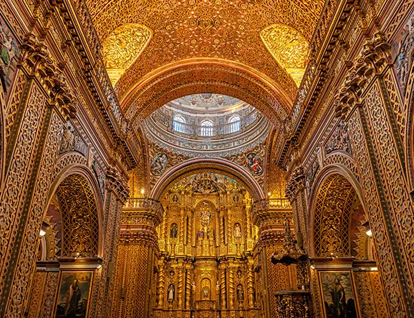 Dagen starter i Quitos gamle bydel, hvor du udforsker de stemningsfulde gader til fods og oplever byens arkitektoniske perler, herunder den overdådige gyldne kirke, den livlige San Francisco-plads og det historiske hovedtorv Plaza Grande.