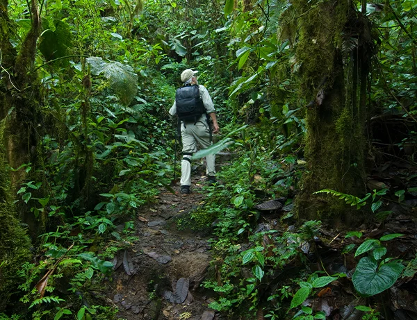 Fra Quito går turen mod Mindo, et frodigt område kendt for sin tågeregnskov og sit rige dyreliv. Du vandrer langs vandfald og gennem tæt grøn skov, hvor farverige fugle som tukaner og kolibrier flyver mellem trækronerne. Naturen her er intens og nærværende – en rolig kontrast til byens puls.