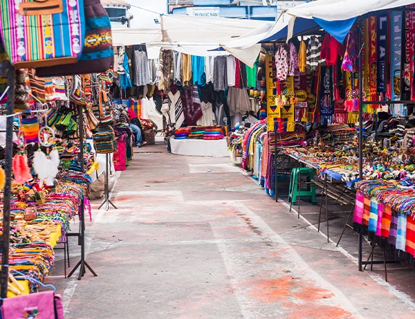 Hvis du ønsker en større oplevelse uden for byen, kan du tilkøbe en heldagsudflugt til Otavalo. Her besøger du et af Sydamerikas mest kendte indianske markeder, fyldt med farver, tekstiler og håndværk. Turen inkluderer også et stop ved Cuicocha-lagunen – en vulkansk kratersø i Andesbjergene med imponerende udsigter. Du finder mere information om udflugten under 'Tilkøbsture'.