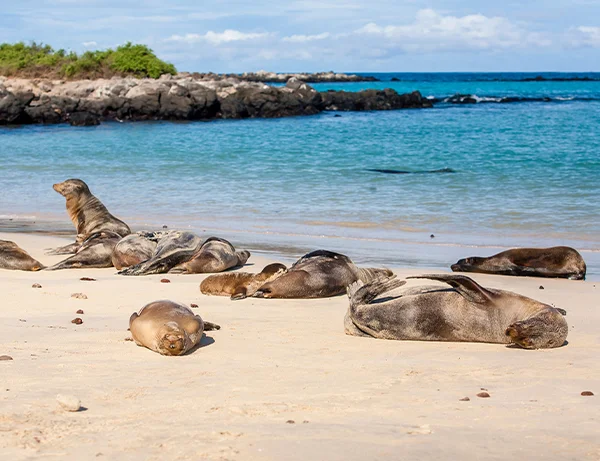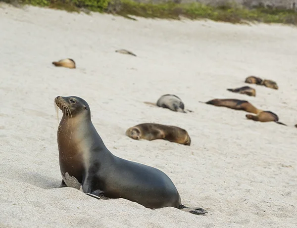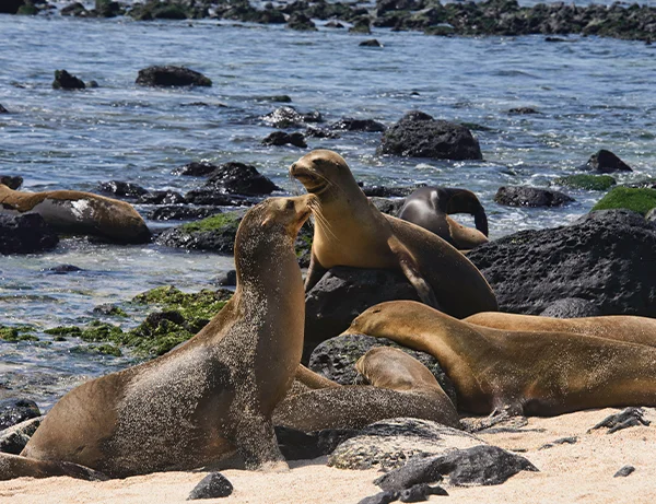 Om eftermiddagen går turen til La Lobería – en strand kendt for sine store søløver. De er nysgerrige og svømmer ofte tæt på, når du snorkler i det klare vand. Du kan også se dem ligge på klipperne eller dase i sandet. Langs stranden er der desuden gode chancer for at spotte gulspurve, fregatfugle og flere arter af Darwins finker. Mellem klipperne lever også havleguaner – en art, du kun finder på Galapagos.